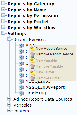 3. Right-click the Report Services option and select New Report Service from the menu.