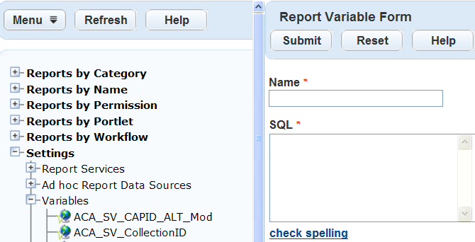 For information and instructions on report variables, see Using Variables in Reports.