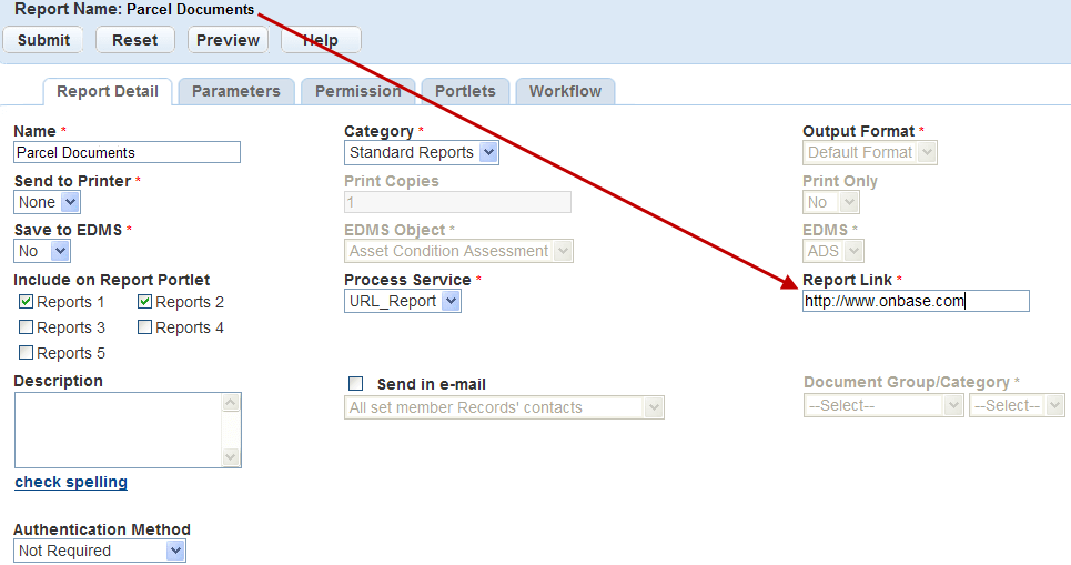 Report Link Enter the URL to the report source. For example, enter http://permit.accela.com. To pass static parameters, include them in the URL address. For example, enter http://permit.accela.com/PERMITID07BBP-00000-0010.