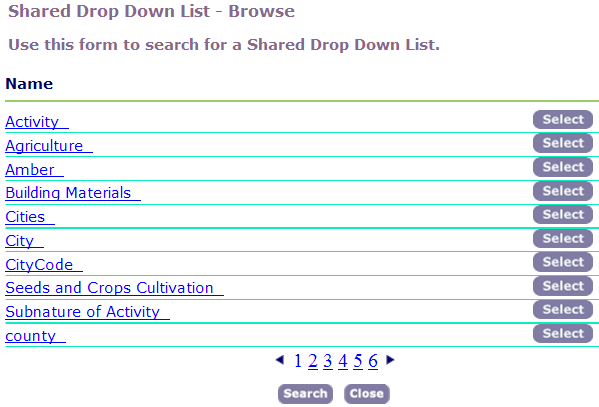• Click Search to return all shared drop down lists.