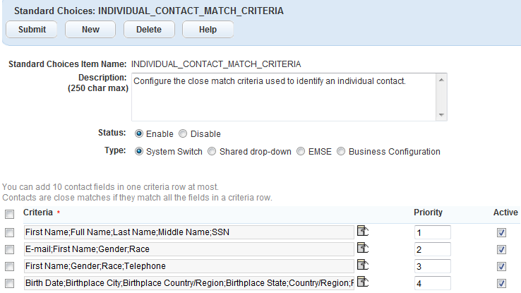 Priority The priority determines the order of the matches found:Close matching contacts that meet the criteria of a higher priority always display before those that meet the criteria of a lower priority.In cases when only one match is necessary for subsequent processing, the close matching contact that meets the criteria of the highest priority is the default one that Civic Platform uses.