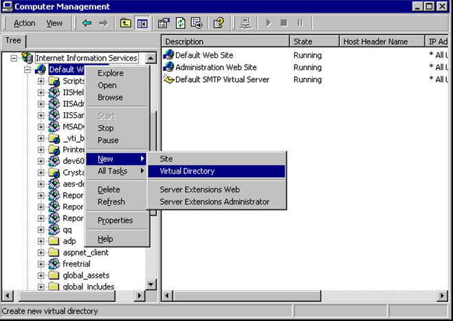 8. Create a virtual directory named accelareports in the default web site node.