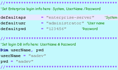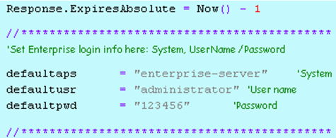 14. Open the file FileDirectory.asp, then update the Enterprise credentials.