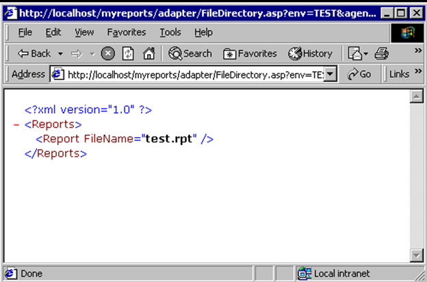 17. Enter this URL in a browser's address field, but with your environment name (TEST) and agency name (ACCELA): http://localhost/Accelareports/adapter/FileDirectory.asp?env=TEST&agency=ACCELA