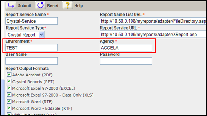 1. Go to Administration > Report Manager > Settings > Report Services > CrystalXI.