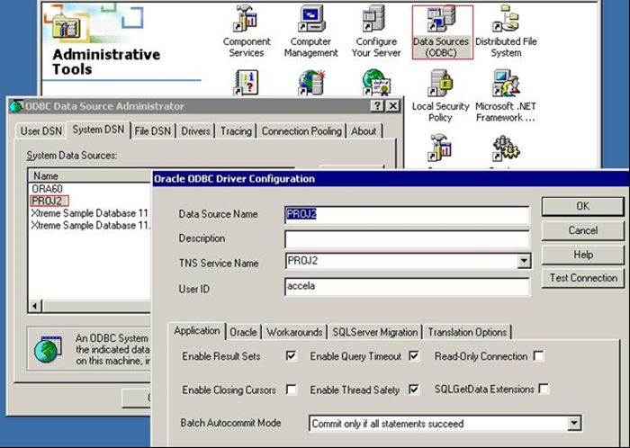 1. Open the ODBC console and create an ODBC connection to Oracle.