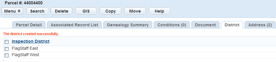 If you are moving, Civic Platform attaches the selected application to the newly selected parcel(s) and removes the application from the original parcel.