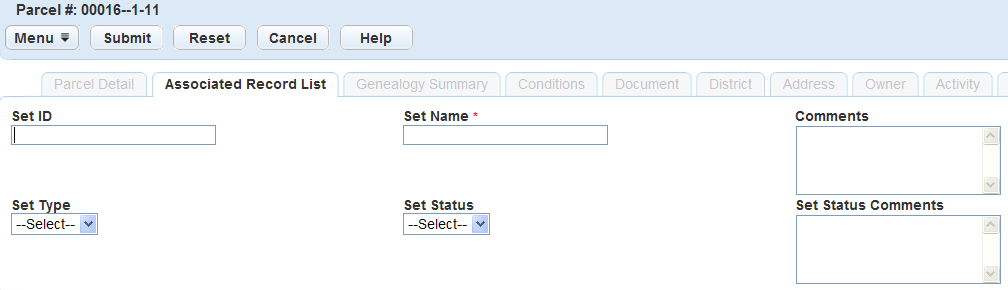 6. Complete the fields with available data. See Parcel List Portlet Fields for field definitions.