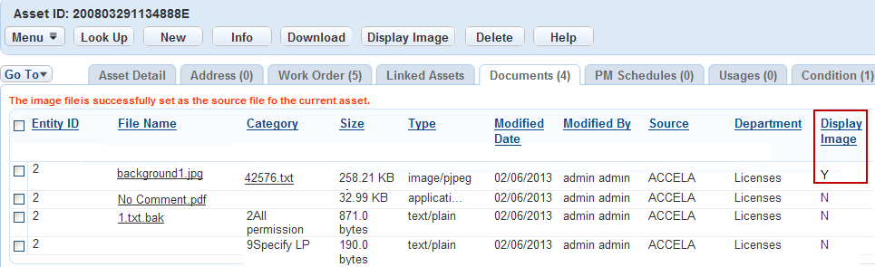 Civic Platform changes the value of the Display Image column of the image file to Y and displays the image in the Asset detail portlet.