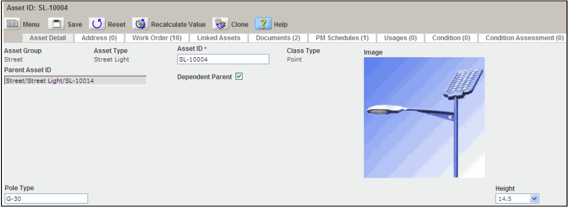 Customize the asset detail view by setting a display image for an asset record. When you upload an image of the asset, you can select that image file to display in the asset record. Users can view the asset’s image in the asset record detail tab as well as in the linked asset detail view. This allows users to visually identify assets and linked assets without leaving the asset detail view.